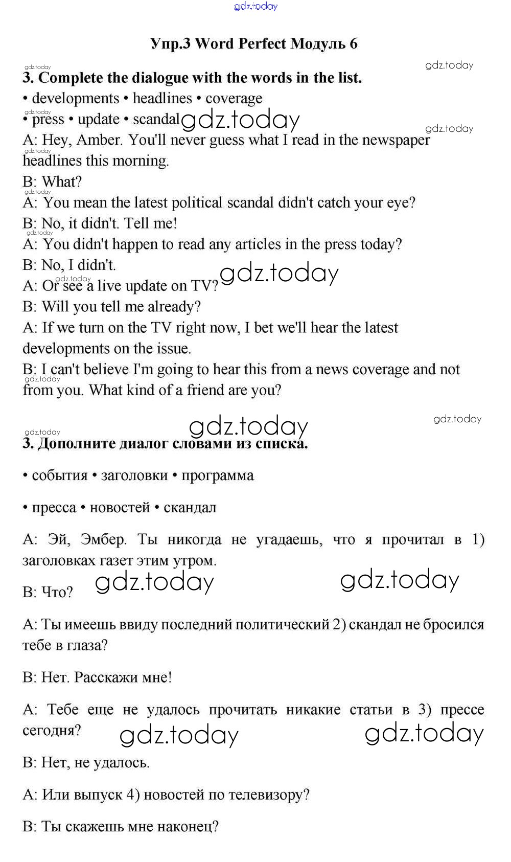 На страницах сайта gdz.today вы найдете учебный и вспомогательный материал, направленный на улучшения знаний школьной программы. ГДЗ - онлайн мир знаний Module 6 Решение к Work Perfect 3 Учебнику по Английскому языку для 11 класса Эванс, Дули Просвещение Spotlight 2015