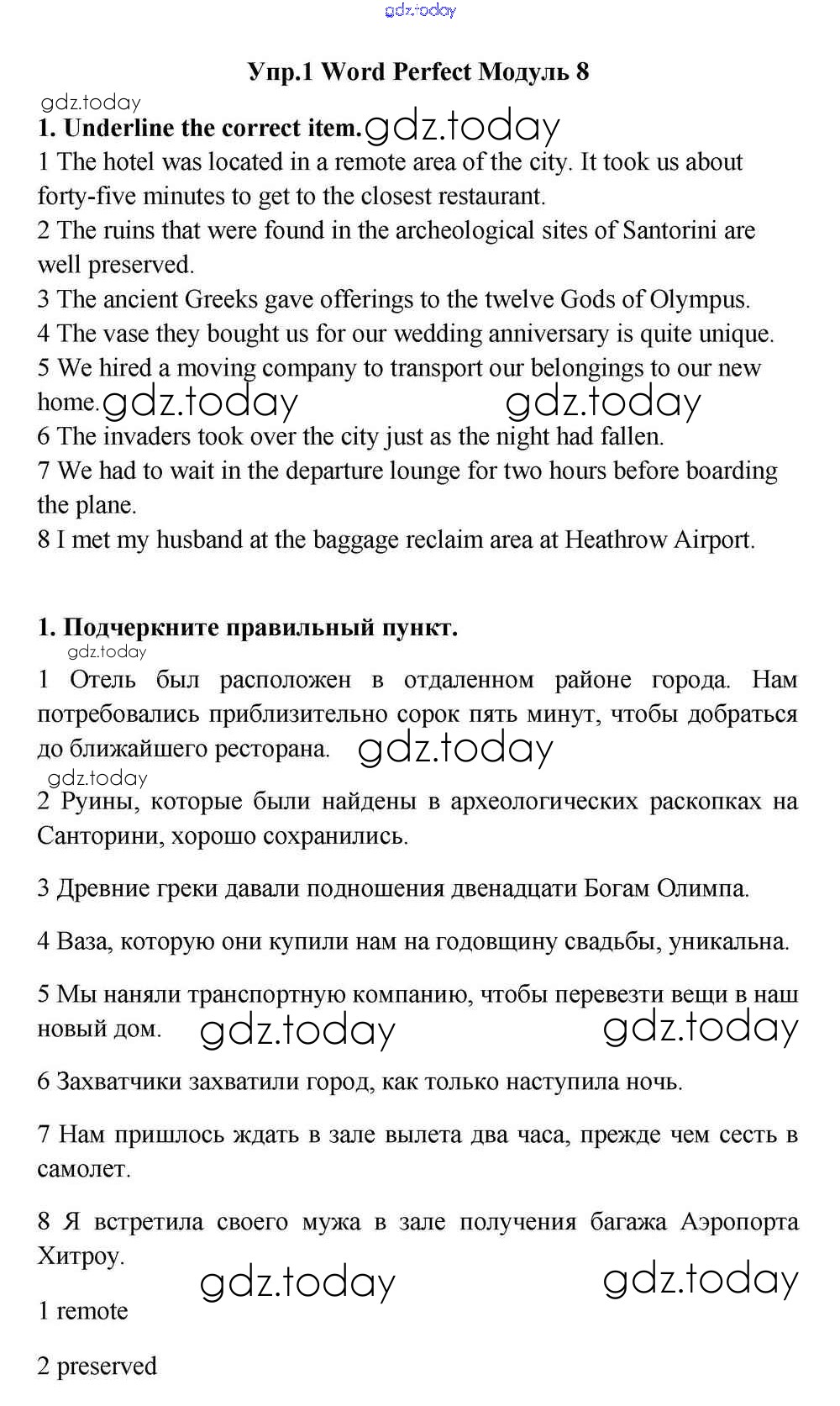 Ответы к Module 8 Решение к Work Perfect 1 Учебнику по Английскому языку для 11 класса Эванс, Дули Просвещение Spotlight 2015