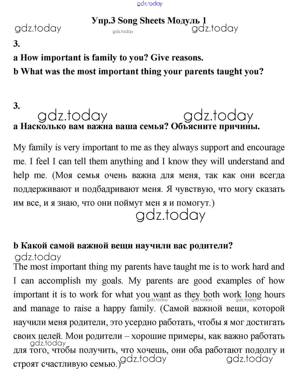 На страницах сайта gdz.today вы найдете учебный и вспомогательный материал, направленный на улучшения знаний школьной программы. ГДЗ - онлайн мир знаний Module 1 Решение к Song Sheets 3 Учебнику по Английскому языку для 11 класса Эванс, Дули  Просвещение Spotlight 2015