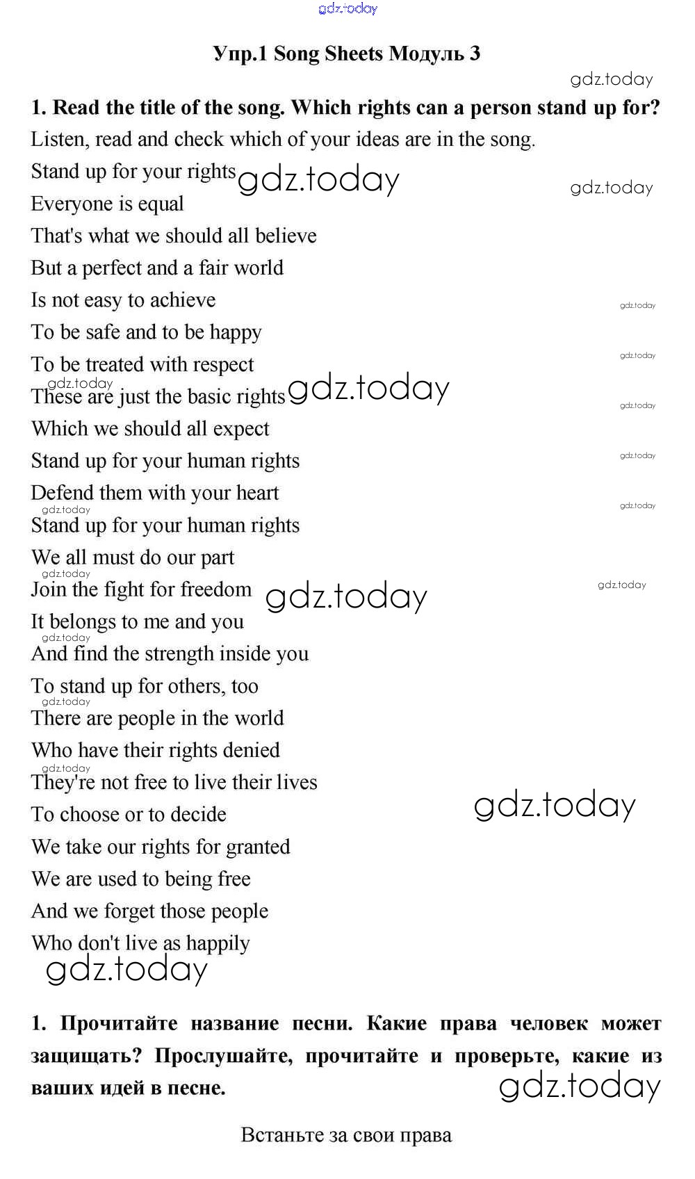 На страницах сайта gdz.today вы найдете учебный и вспомогательный материал, направленный на улучшения знаний школьной программы. ГДЗ - онлайн мир знаний Module 3 Решение к Song Sheets 1 Учебнику по Английскому языку для 11 класса Эванс, Дули Просвещение Spotlight 2015
