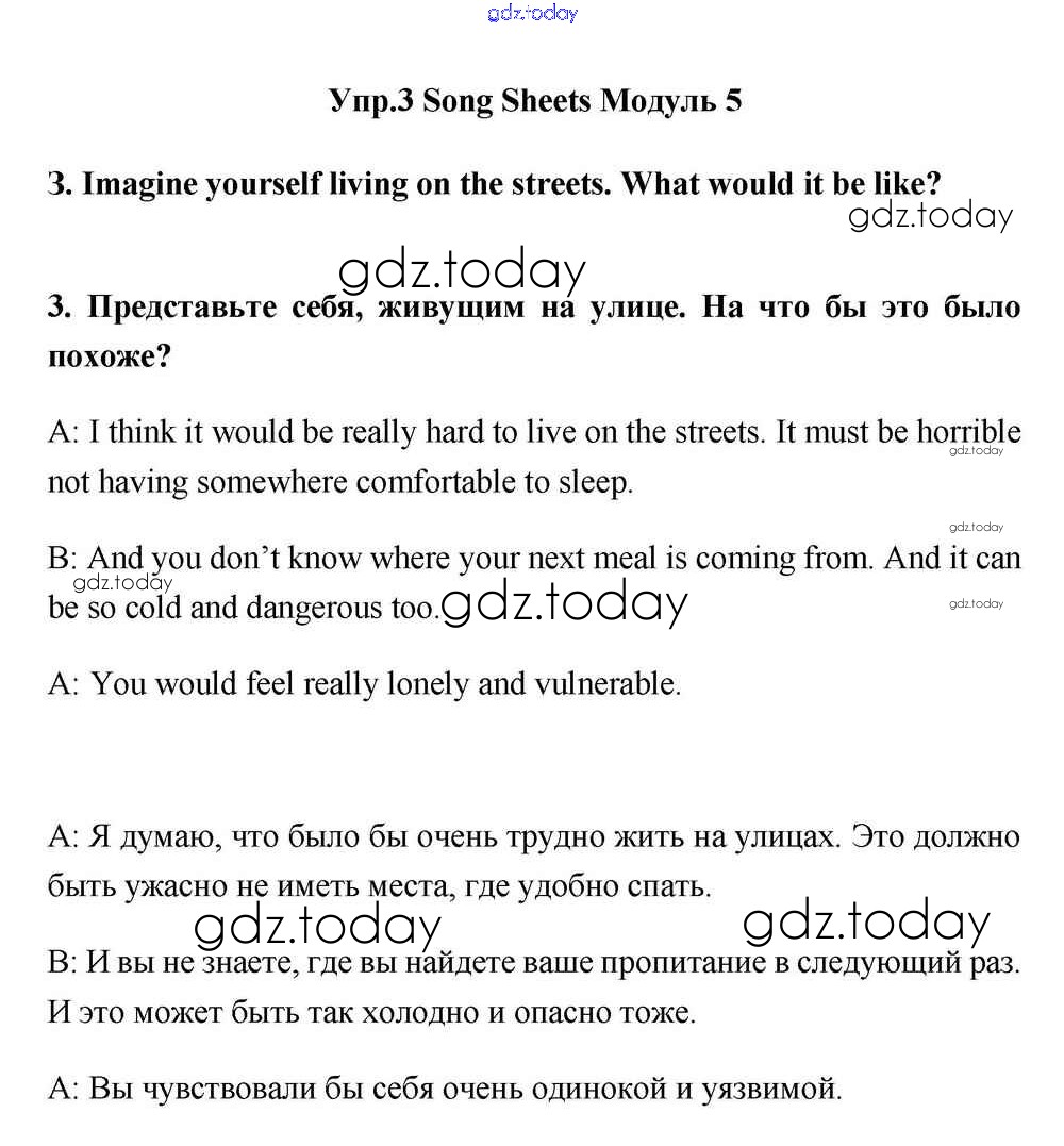 На страницах сайта gdz.today вы найдете учебный и вспомогательный материал, направленный на улучшения знаний школьной программы. ГДЗ - онлайн мир знаний Module 5 Решение к Song Sheets 3 Учебнику по Английскому языку для 11 класса Эванс, Дули Просвещение Spotlight 2015