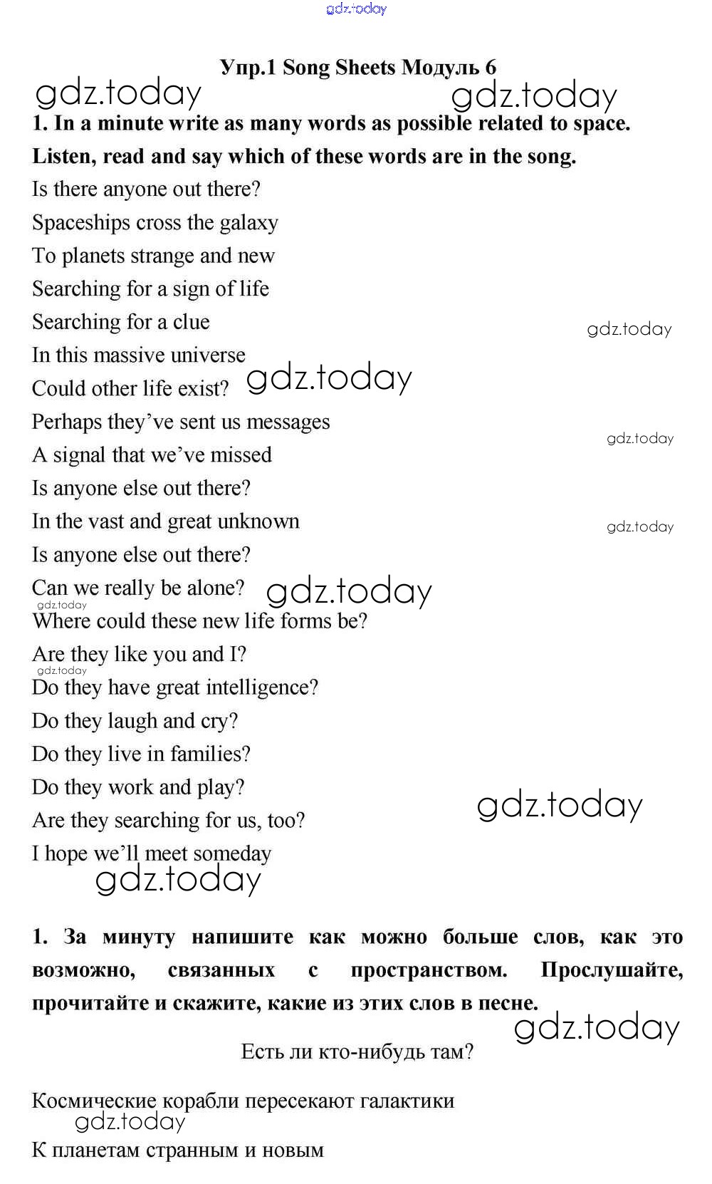 На страницах сайта gdz.today вы найдете учебный и вспомогательный материал, направленный на улучшения знаний школьной программы. ГДЗ - онлайн мир знаний Module 6 Решение к Song Sheets 1 Учебнику по Английскому языку для 11 класса Эванс, Дули Просвещение Spotlight 2015