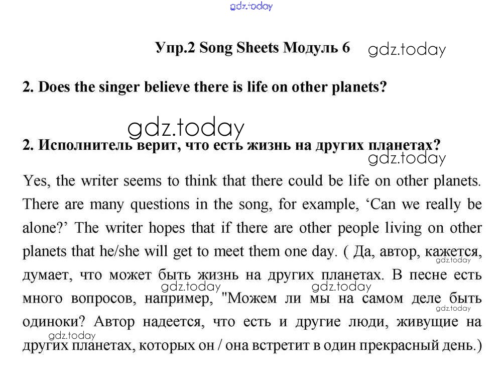 На страницах сайта gdz.today вы найдете учебный и вспомогательный материал, направленный на улучшения знаний школьной программы. ГДЗ - онлайн мир знаний Module 6 Решение к Song Sheets 2 Учебнику по Английскому языку для 11 класса Эванс, Дули Просвещение Spotlight 2015