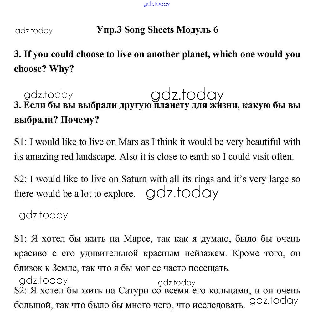 На страницах сайта gdz.today вы найдете учебный и вспомогательный материал, направленный на улучшения знаний школьной программы. ГДЗ - онлайн мир знаний Module 6 Решение к Song Sheets 3 Учебнику по Английскому языку для 11 класса Эванс, Дули Просвещение Spotlight 2015