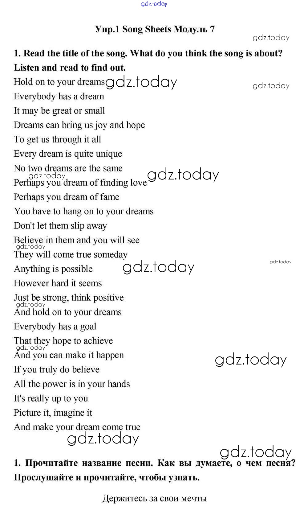 На страницах сайта gdz.today вы найдете учебный и вспомогательный материал, направленный на улучшения знаний школьной программы. ГДЗ - онлайн мир знаний Module 7 Решение к Song Sheets 1 Учебнику по Английскому языку для 11 класса Эванс, Дули Просвещение Spotlight 2015