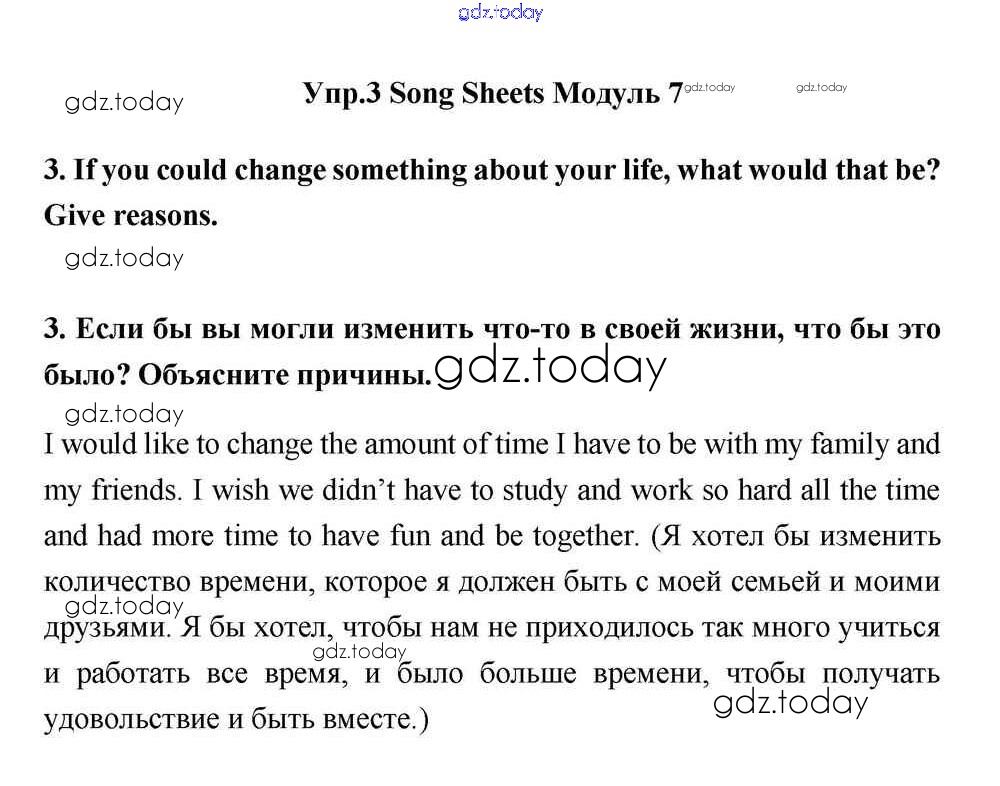На страницах сайта gdz.today вы найдете учебный и вспомогательный материал, направленный на улучшения знаний школьной программы. ГДЗ - онлайн мир знаний Module 7 Решение к Song Sheets 3 Учебнику по Английскому языку для 11 класса Эванс, Дули Просвещение Spotlight 2015