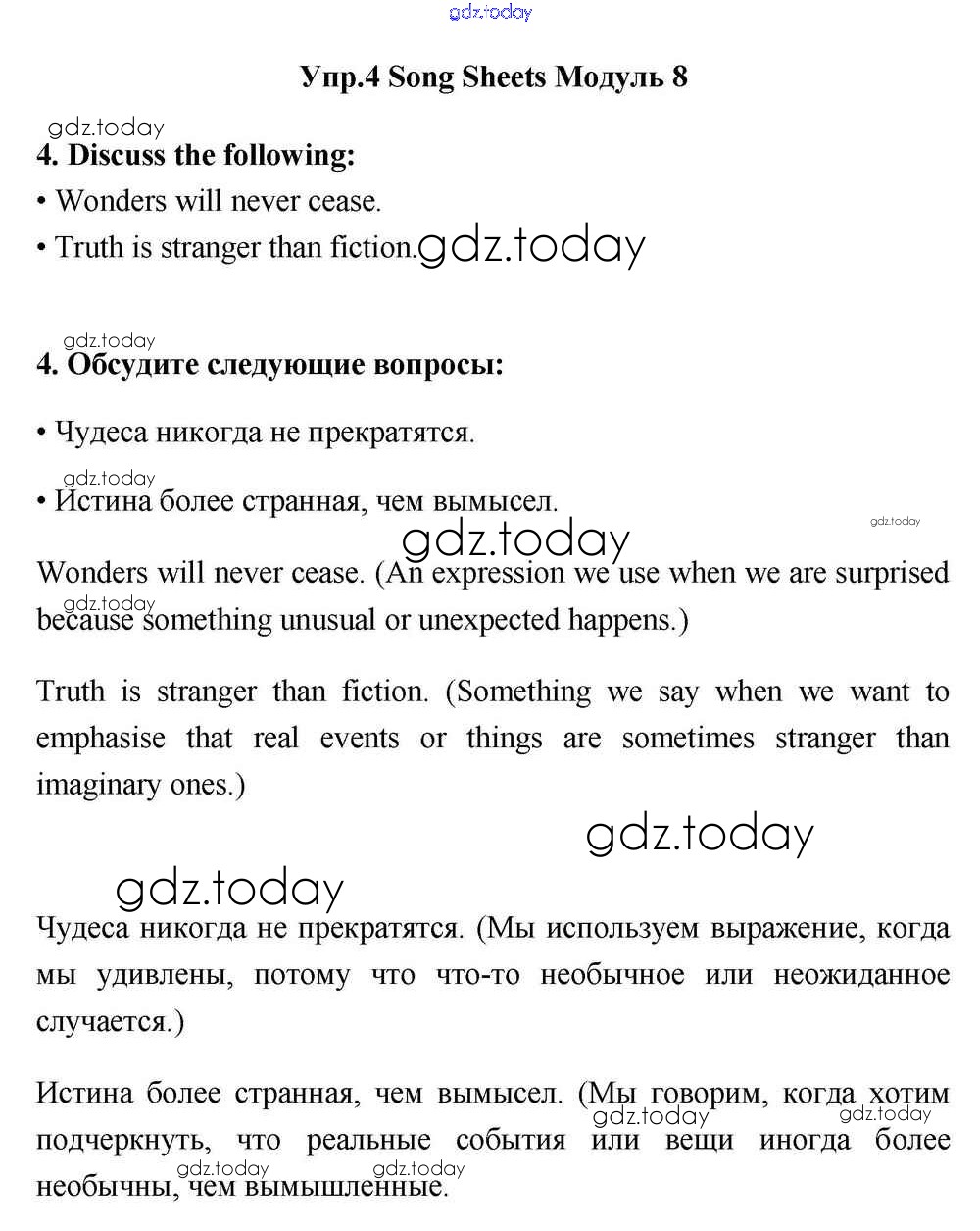 Ответы к Module 8 Решение к Song Sheets 4 Учебнику по Английскому языку для 11 класса Эванс, Дули Просвещение Spotlight 2015