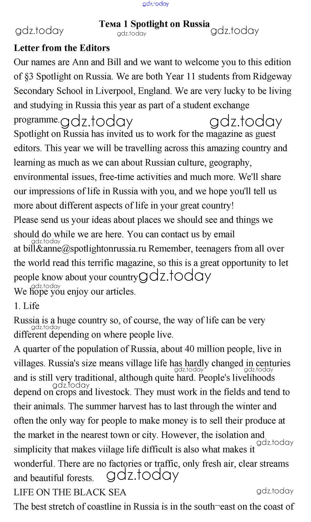На страницах сайта gdz.today вы найдете учебный и вспомогательный материал, направленный на улучшения знаний школьной программы. ГДЗ - онлайн мир знаний Решение к Spotlight on Russia Life (стр.3) Учебнику по Английскому языку для 11 класса Эванс, Дули Просвещение Spotlight 2015