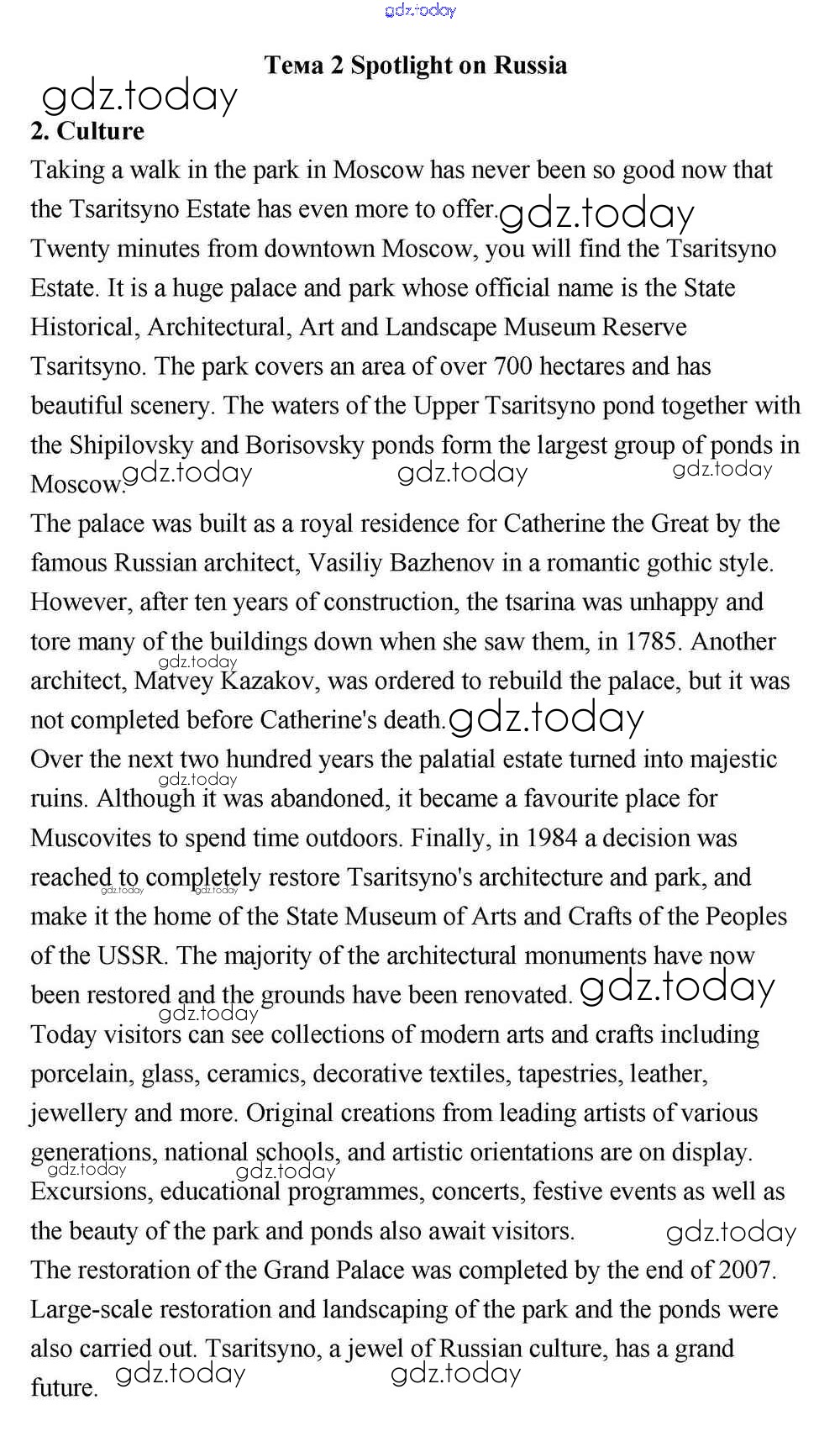 На страницах сайта gdz.today вы найдете учебный и вспомогательный материал, направленный на улучшения знаний школьной программы. ГДЗ - онлайн мир знаний Решение к Spotlight on Russia Culture (стр.4) Учебнику по Английскому языку для 11 класса Эванс, Дули Просвещение Spotlight 2015