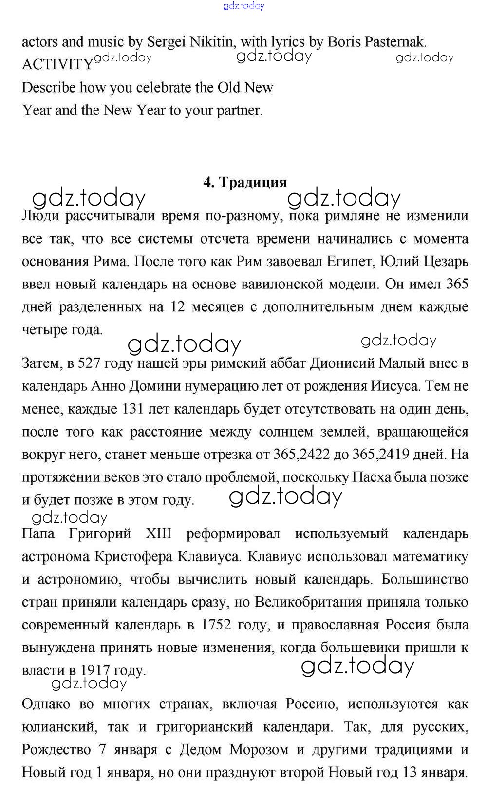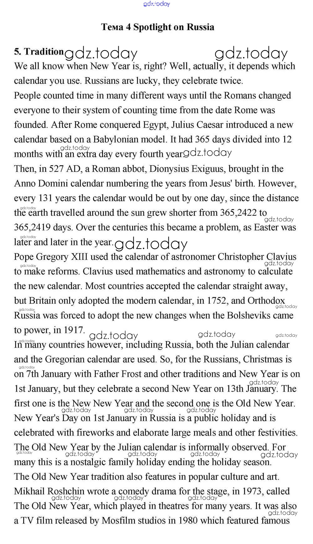 Ответы к Решение к Spotlight on Russia Tradition (стр.6) Учебнику по Английскому языку для 11 класса Эванс, Дули Просвещение Spotlight 2015