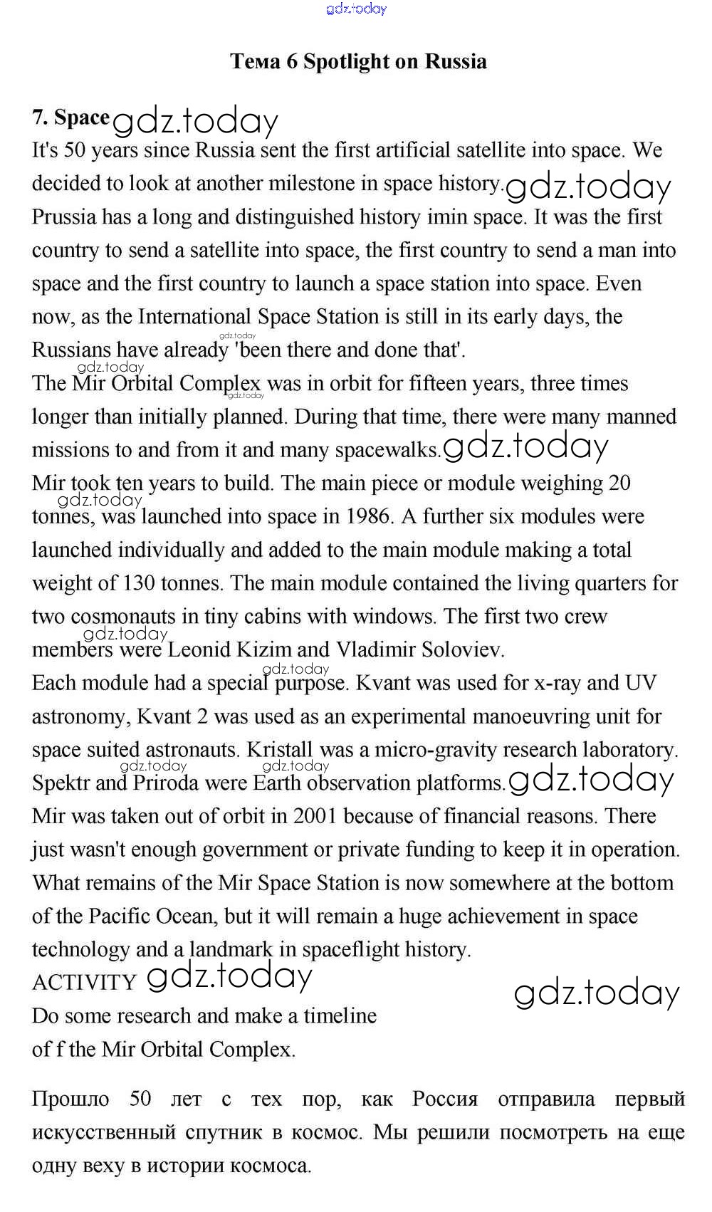 На страницах сайта gdz.today вы найдете учебный и вспомогательный материал, направленный на улучшения знаний школьной программы. ГДЗ - онлайн мир знаний Решение к Spotlight on Russia Space (стр.8) Учебнику по Английскому языку для 11 класса Эванс, Дули Просвещение Spotlight 2015