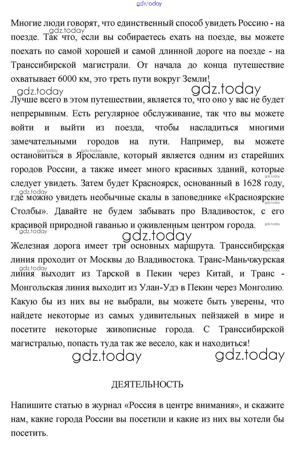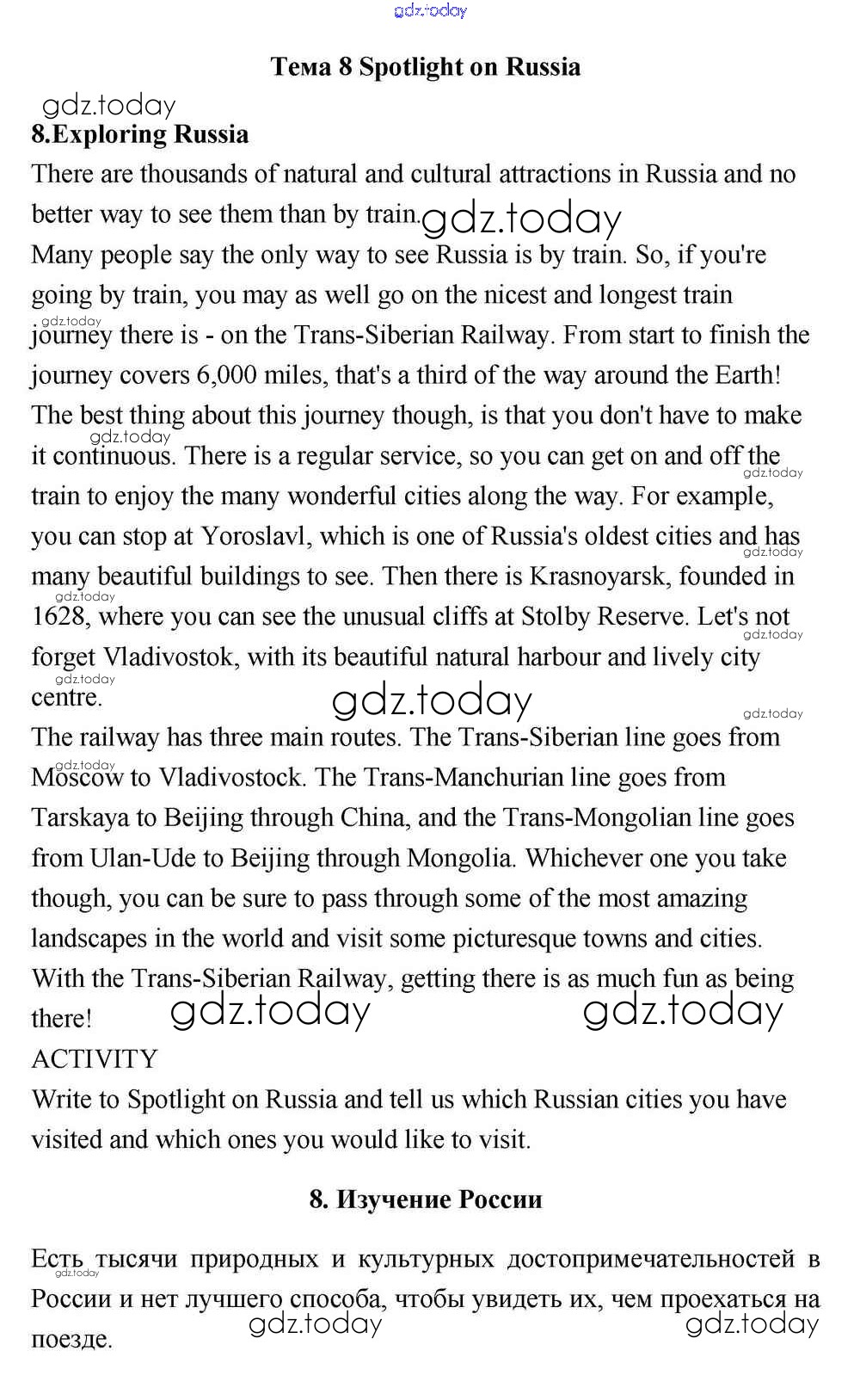 На страницах сайта gdz.today вы найдете учебный и вспомогательный материал, направленный на улучшения знаний школьной программы. ГДЗ - онлайн мир знаний Решение к Spotlight on Russia Exploring Russia (стр.10) Учебнику по Английскому языку для 11 класса Эванс, Дули Просвещение Spotlight 2015