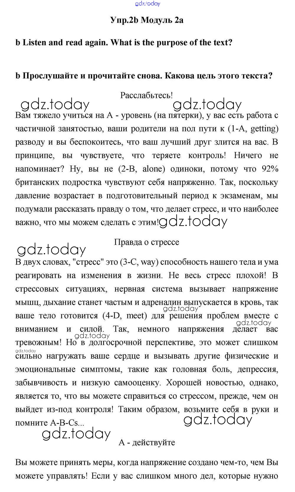 На страницах сайта gdz.today вы найдете учебный и вспомогательный материал, направленный на улучшения знаний школьной программы. ГДЗ - онлайн мир знаний Часть 2a Решение к Module 2 2b Учебнику по Английскому языку для 11 класса Эванс, Дули Просвещение Spotlight 2015