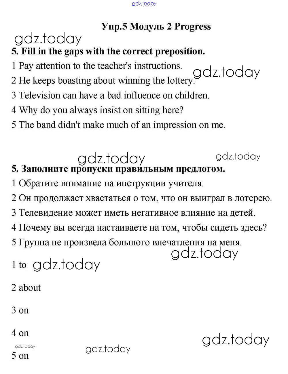 На страницах сайта gdz.today вы найдете учебный и вспомогательный материал, направленный на улучшения знаний школьной программы. ГДЗ - онлайн мир знаний Progress Check Решение к Module 2 5 Учебнику по Английскому языку для 11 класса Эванс, Дули Просвещение Spotlight 2015