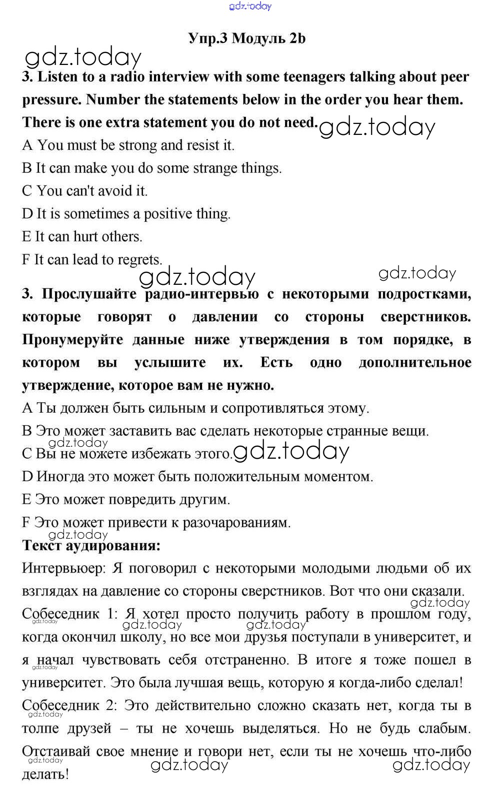 На страницах сайта gdz.today вы найдете учебный и вспомогательный материал, направленный на улучшения знаний школьной программы. ГДЗ - онлайн мир знаний Часть 2b Решение к Module 2 3 Учебнику по Английскому языку для 11 класса Эванс, Дули Просвещение Spotlight 2015