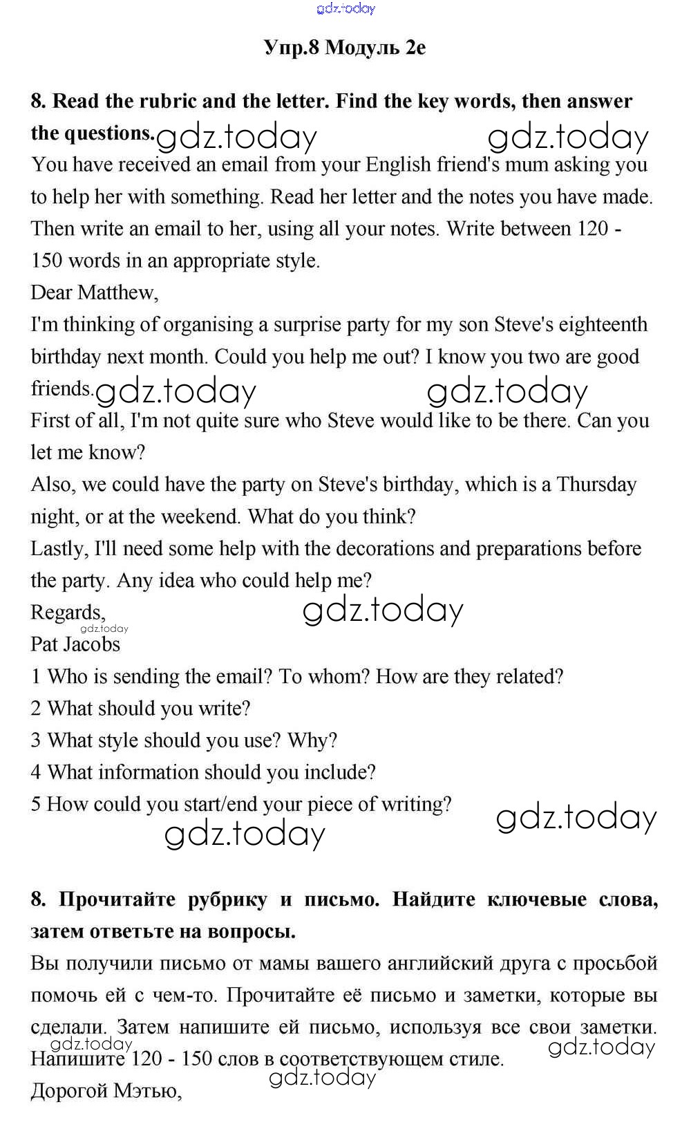 Ответы к Часть 2e Решение к Module 2 8 Учебнику по Английскому языку для 11 класса Эванс, Дули Просвещение Spotlight 2015