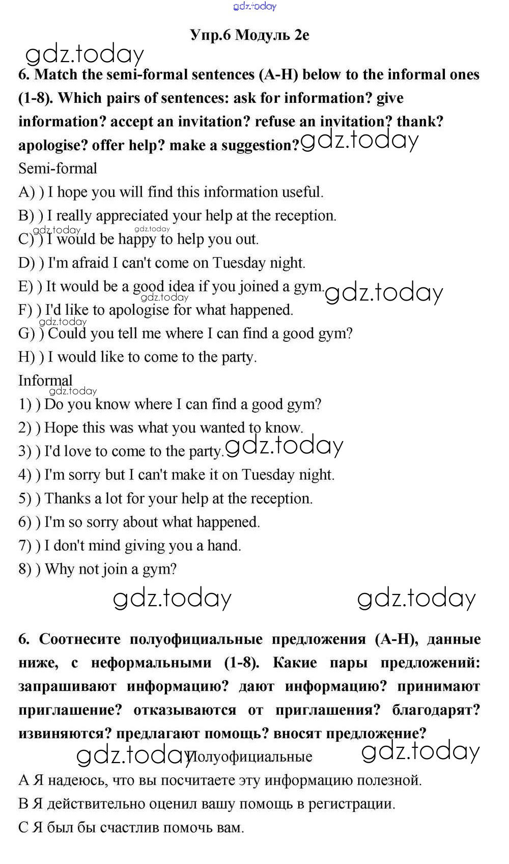 На страницах сайта gdz.today вы найдете учебный и вспомогательный материал, направленный на улучшения знаний школьной программы. ГДЗ - онлайн мир знаний Часть 2e Решение к Module 2 6 Учебнику по Английскому языку для 11 класса Эванс, Дули Просвещение Spotlight 2015