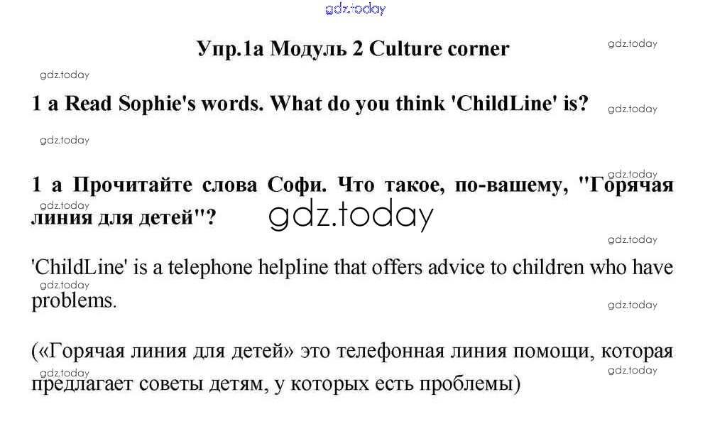 На страницах сайта gdz.today вы найдете учебный и вспомогательный материал, направленный на улучшения знаний школьной программы. ГДЗ - онлайн мир знаний Culture corner Решение к Module 2 1a Учебнику по Английскому языку для 11 класса Эванс, Дули Просвещение Spotlight 2015