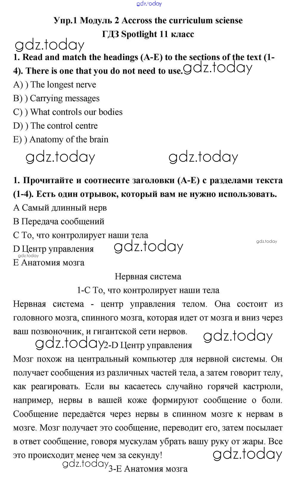 На страницах сайта gdz.today вы найдете учебный и вспомогательный материал, направленный на улучшения знаний школьной программы. ГДЗ - онлайн мир знаний Accross the curriculum sciense Решение к Module 2 1 Учебнику по Английскому языку для 11 класса Эванс, Дули Просвещение Spotlight 2015
