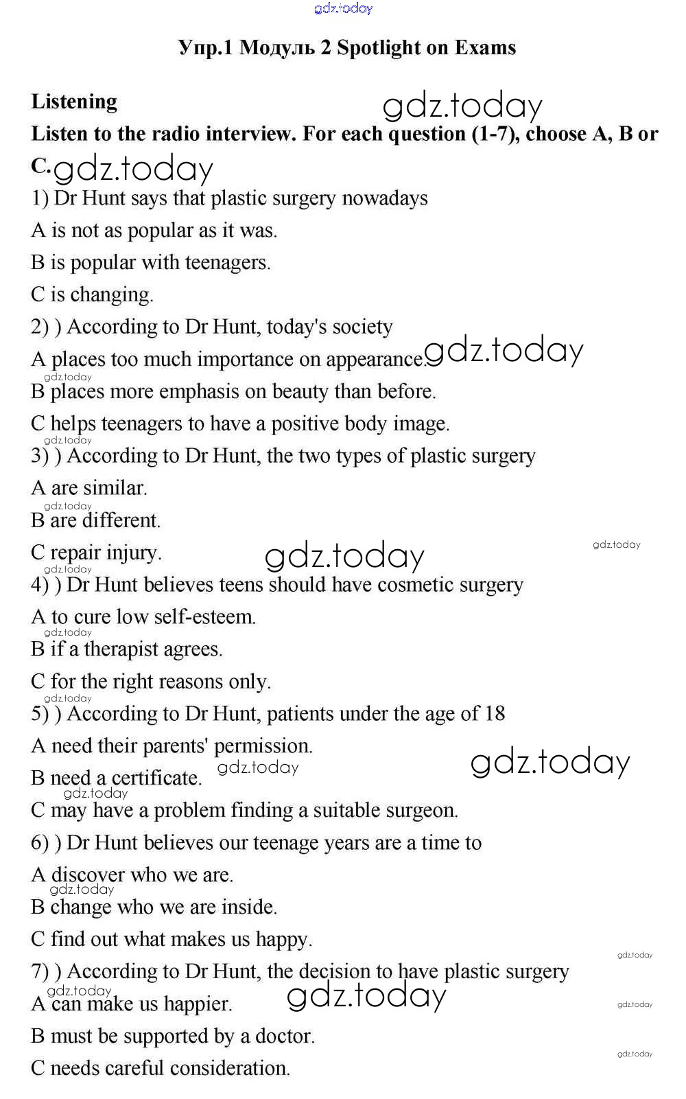 Ответы к Spotlight on Exams Решение к Module 2 1 Учебнику по Английскому языку для 11 класса Эванс, Дули Просвещение Spotlight 2015