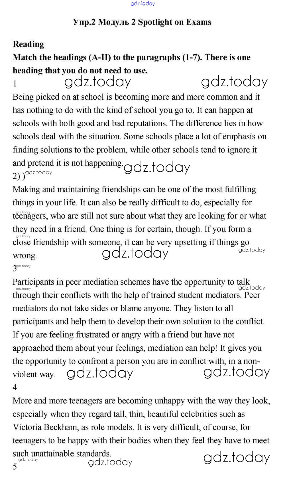На страницах сайта gdz.today вы найдете учебный и вспомогательный материал, направленный на улучшения знаний школьной программы. ГДЗ - онлайн мир знаний Spotlight on Exams Решение к Module 2 2 Учебнику по Английскому языку для 11 класса Эванс, Дули Просвещение Spotlight 2015