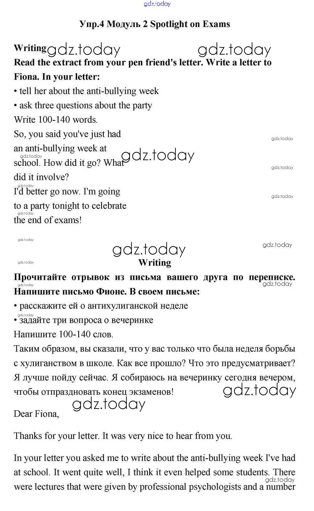 На страницах сайта gdz.today вы найдете учебный и вспомогательный материал, направленный на улучшения знаний школьной программы. ГДЗ - онлайн мир знаний Spotlight on Exams Решение к Module 2 4 Учебнику по Английскому языку для 11 класса Эванс, Дули Просвещение Spotlight 2015