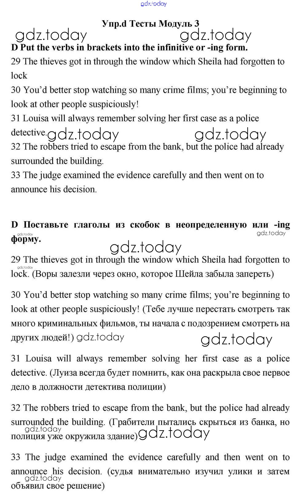 На страницах сайта gdz.today вы найдете учебный и вспомогательный материал, направленный на улучшения знаний школьной программы. ГДЗ - онлайн мир знаний Тесты Решение к Module 3 D Учебнику по Английскому языку для 11 класса Эванс, Дули  Просвещение Spotlight 2015