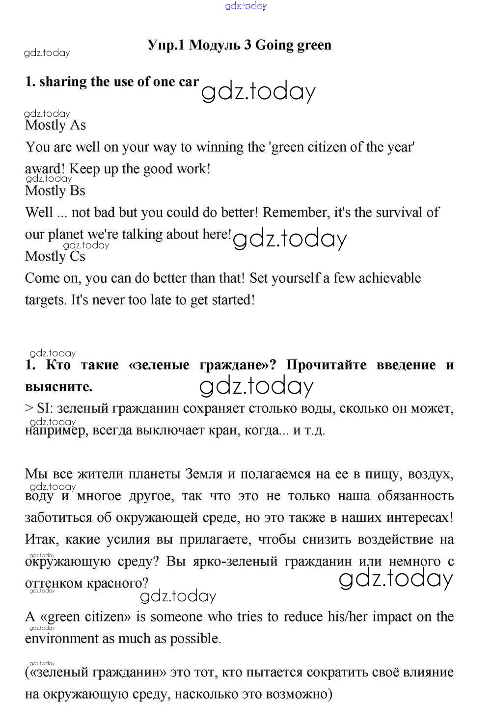 На страницах сайта gdz.today вы найдете учебный и вспомогательный материал, направленный на улучшения знаний школьной программы. ГДЗ - онлайн мир знаний Going green Решение к Module 3 1 Учебнику по Английскому языку для 11 класса Эванс, Дули Просвещение Spotlight 2015