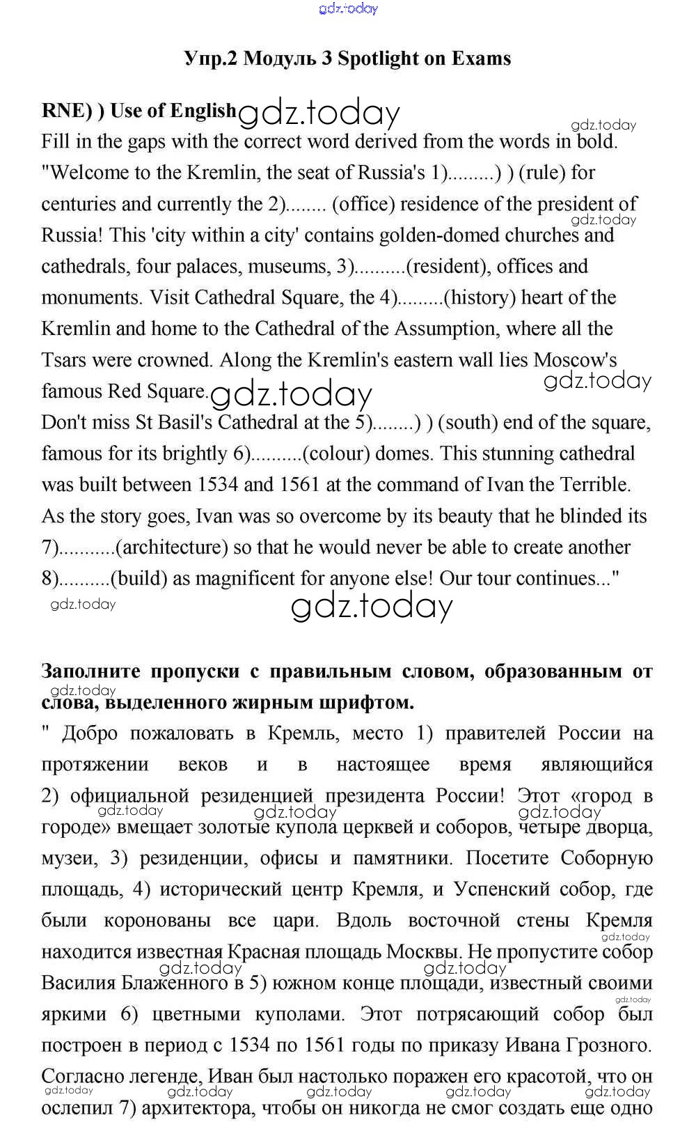 На страницах сайта gdz.today вы найдете учебный и вспомогательный материал, направленный на улучшения знаний школьной программы. ГДЗ - онлайн мир знаний Spotlight on Exams Решение к Module 3 2 Учебнику по Английскому языку для 11 класса Эванс, Дули  Просвещение Spotlight 2015