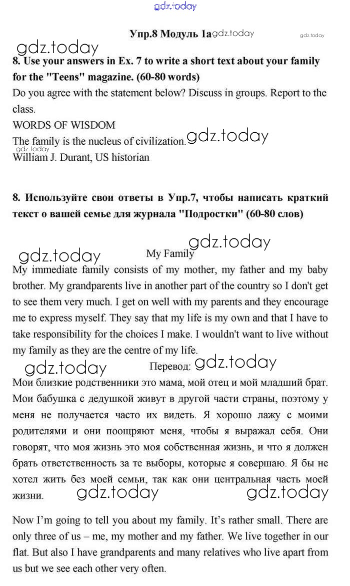 На страницах сайта gdz.today вы найдете учебный и вспомогательный материал, направленный на улучшения знаний школьной программы. ГДЗ - онлайн мир знаний 1a Решение. Module 1. Relationships 8 Учебнику по Английскому языку для 11 класса Эванс, Дули Просвещение Spotlight 2015
