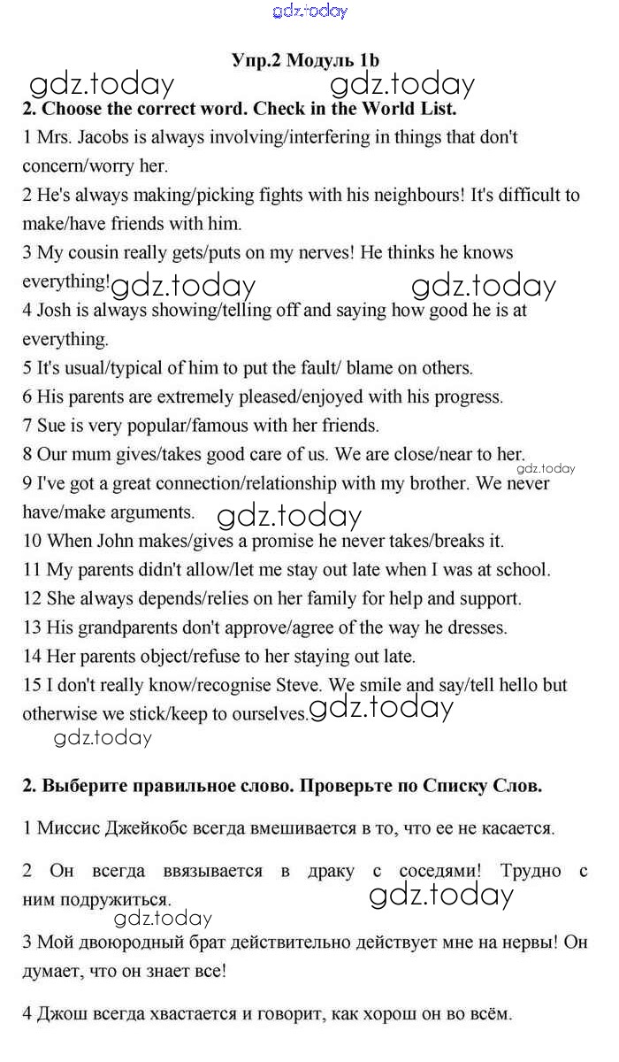 На страницах сайта gdz.today вы найдете учебный и вспомогательный материал, направленный на улучшения знаний школьной программы. ГДЗ - онлайн мир знаний 1b Решение. Module 1. Relationships 2 Учебнику по Английскому языку для 11 класса Эванс, Дули Просвещение Spotlight 2015