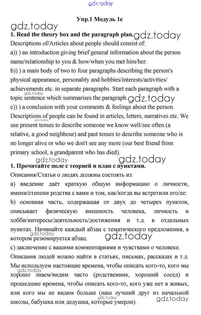 На страницах сайта gdz.today вы найдете учебный и вспомогательный материал, направленный на улучшения знаний школьной программы. ГДЗ - онлайн мир знаний 1e Решение. Module 1. Relationships 1 Учебнику по Английскому языку для 11 класса Эванс, Дули Просвещение Spotlight 2015