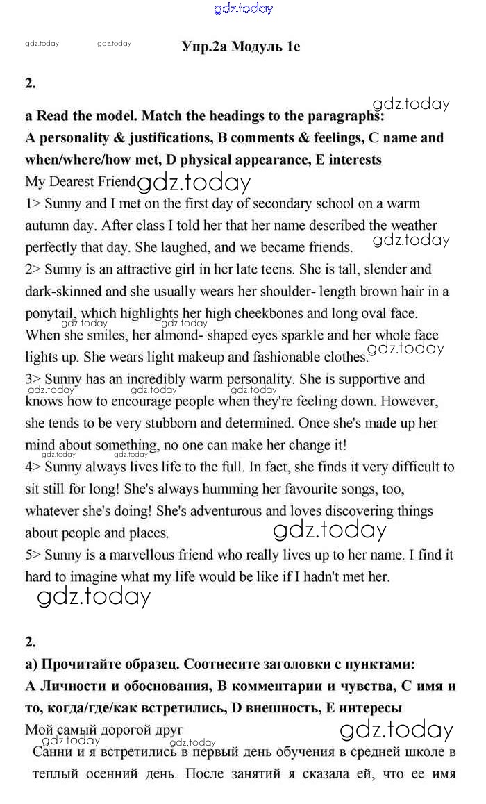 На страницах сайта gdz.today вы найдете учебный и вспомогательный материал, направленный на улучшения знаний школьной программы. ГДЗ - онлайн мир знаний 1e Решение. Module 1. Relationships 2 Учебнику по Английскому языку для 11 класса Эванс, Дули Просвещение Spotlight 2015