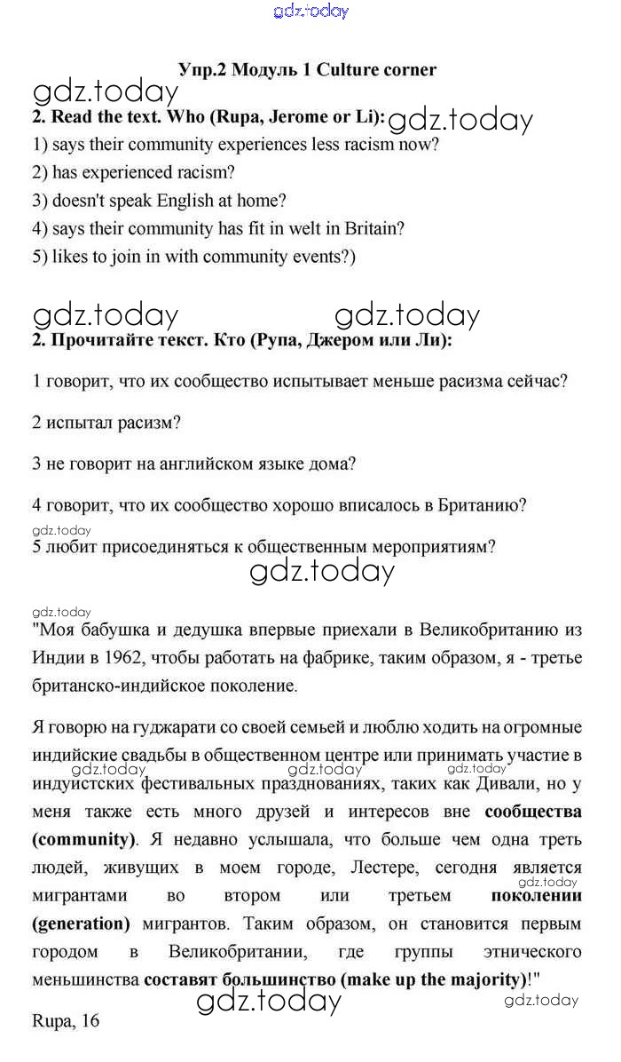 На страницах сайта gdz.today вы найдете учебный и вспомогательный материал, направленный на улучшения знаний школьной программы. ГДЗ - онлайн мир знаний Culture corner 1 Решение. Module 1. Relationships 2 Учебнику по Английскому языку для 11 класса Эванс, Дули Просвещение Spotlight 2015