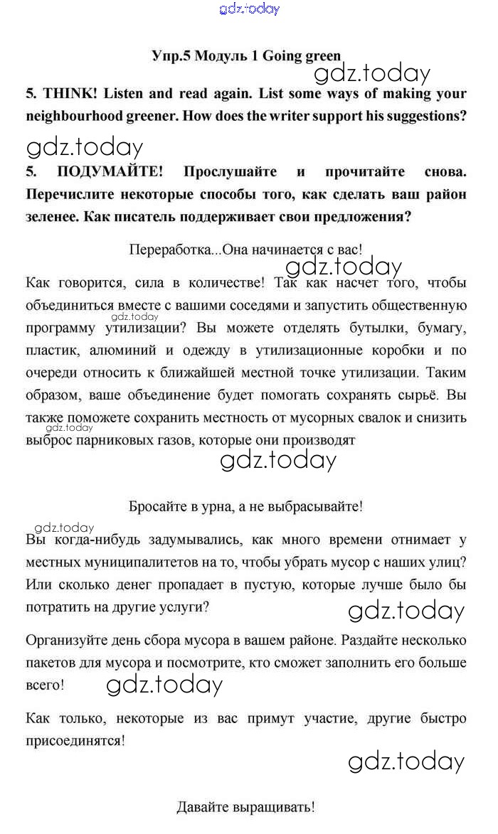 На страницах сайта gdz.today вы найдете учебный и вспомогательный материал, направленный на улучшения знаний школьной программы. ГДЗ - онлайн мир знаний Going green Решение. Module 1. Relationships 5 Учебнику по Английскому языку для 11 класса Эванс, Дули Просвещение Spotlight 2015