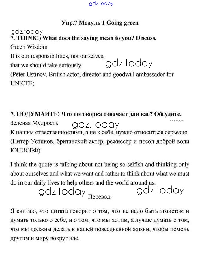 На страницах сайта gdz.today вы найдете учебный и вспомогательный материал, направленный на улучшения знаний школьной программы. ГДЗ - онлайн мир знаний Going green Решение. Module 1. Relationships 7 Учебнику по Английскому языку для 11 класса Эванс, Дули Просвещение Spotlight 2015
