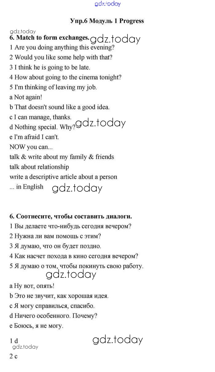 На страницах сайта gdz.today вы найдете учебный и вспомогательный материал, направленный на улучшения знаний школьной программы. ГДЗ - онлайн мир знаний Progress check 1 Решение. Module 1. Relationships 6 Учебнику по Английскому языку для 11 класса Эванс, Дули Просвещение Spotlight 2015