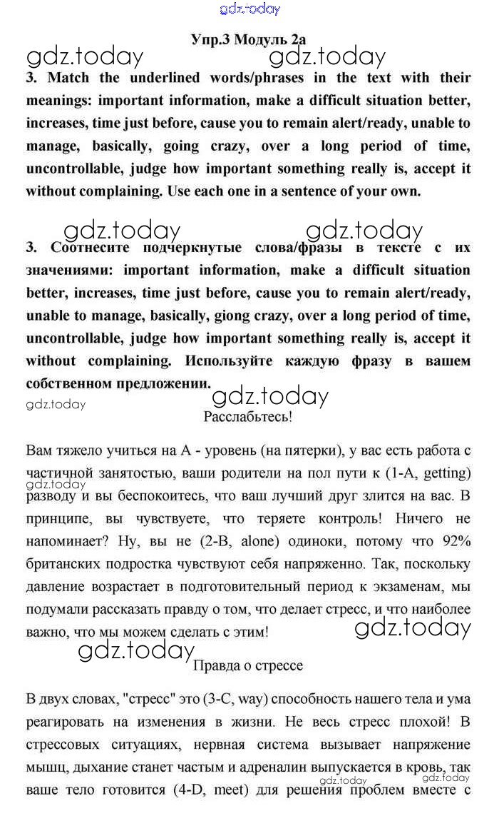 На страницах сайта gdz.today вы найдете учебный и вспомогательный материал, направленный на улучшения знаний школьной программы. ГДЗ - онлайн мир знаний 2a Решение. Module 2. Where there's a will, there's a way 3 Учебнику по Английскому языку для 11 класса Эванс, Дули Просвещение Spotlight 2015