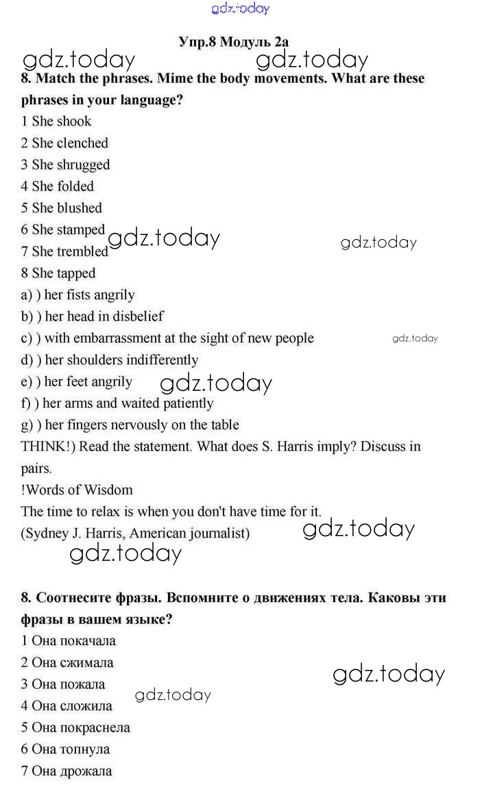На страницах сайта gdz.today вы найдете учебный и вспомогательный материал, направленный на улучшения знаний школьной программы. ГДЗ - онлайн мир знаний 2a Решение. Module 2. Where there's a will, there's a way 8 Учебнику по Английскому языку для 11 класса Эванс, Дули Просвещение Spotlight 2015