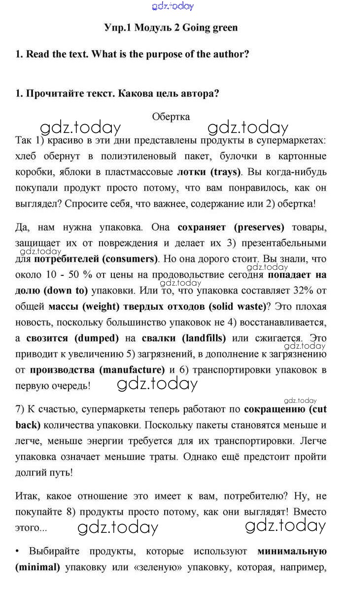 На страницах сайта gdz.today вы найдете учебный и вспомогательный материал, направленный на улучшения знаний школьной программы. ГДЗ - онлайн мир знаний Going green Решение. Module 2. Where there's a will, there's a way 1 Учебнику по Английскому языку для 11 класса Эванс, Дули Просвещение Spotlight 2015