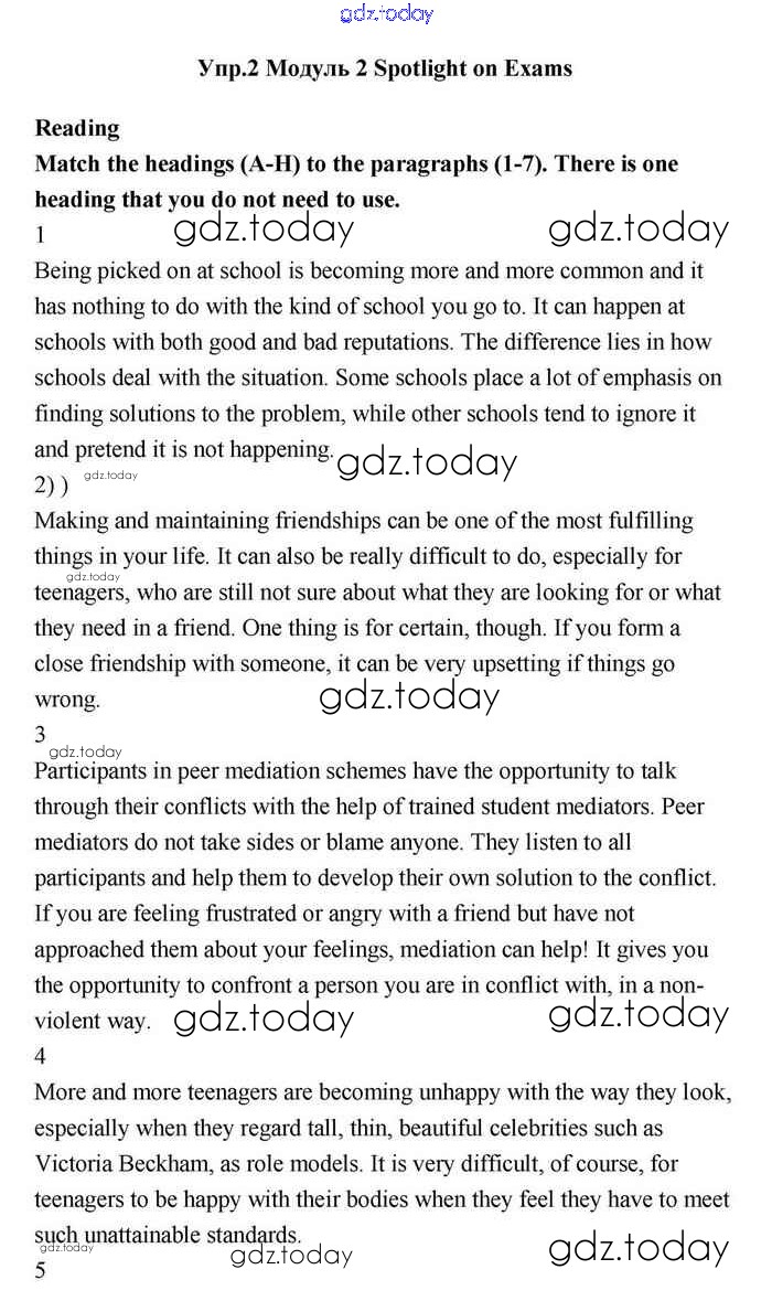 На страницах сайта gdz.today вы найдете учебный и вспомогательный материал, направленный на улучшения знаний школьной программы. ГДЗ - онлайн мир знаний Spotlight on exams Решение. Module 2. Where there's a will, there's a way Reading Учебнику по Английскому языку для 11 класса Эванс, Дули Просвещение Spotlight 2015