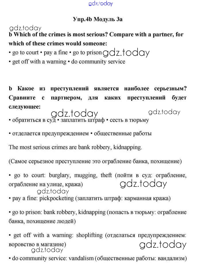 На страницах сайта gdz.today вы найдете учебный и вспомогательный материал, направленный на улучшения знаний школьной программы. ГДЗ - онлайн мир знаний 3a Решение. Module 3. Responsibility 4 Учебнику по Английскому языку для 11 класса Эванс, Дули Просвещение Spotlight 2015