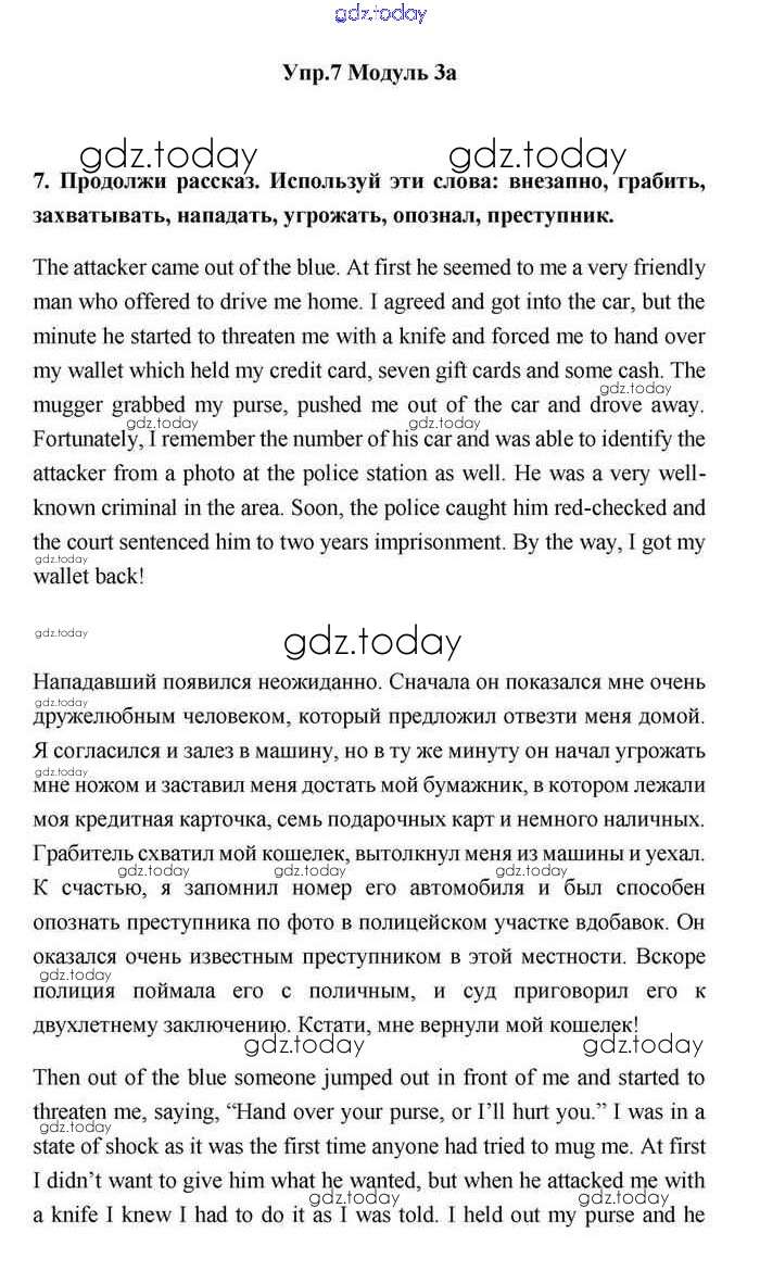 На страницах сайта gdz.today вы найдете учебный и вспомогательный материал, направленный на улучшения знаний школьной программы. ГДЗ - онлайн мир знаний 3a Решение. Module 3. Responsibility 7 Учебнику по Английскому языку для 11 класса Эванс, Дули Просвещение Spotlight 2015