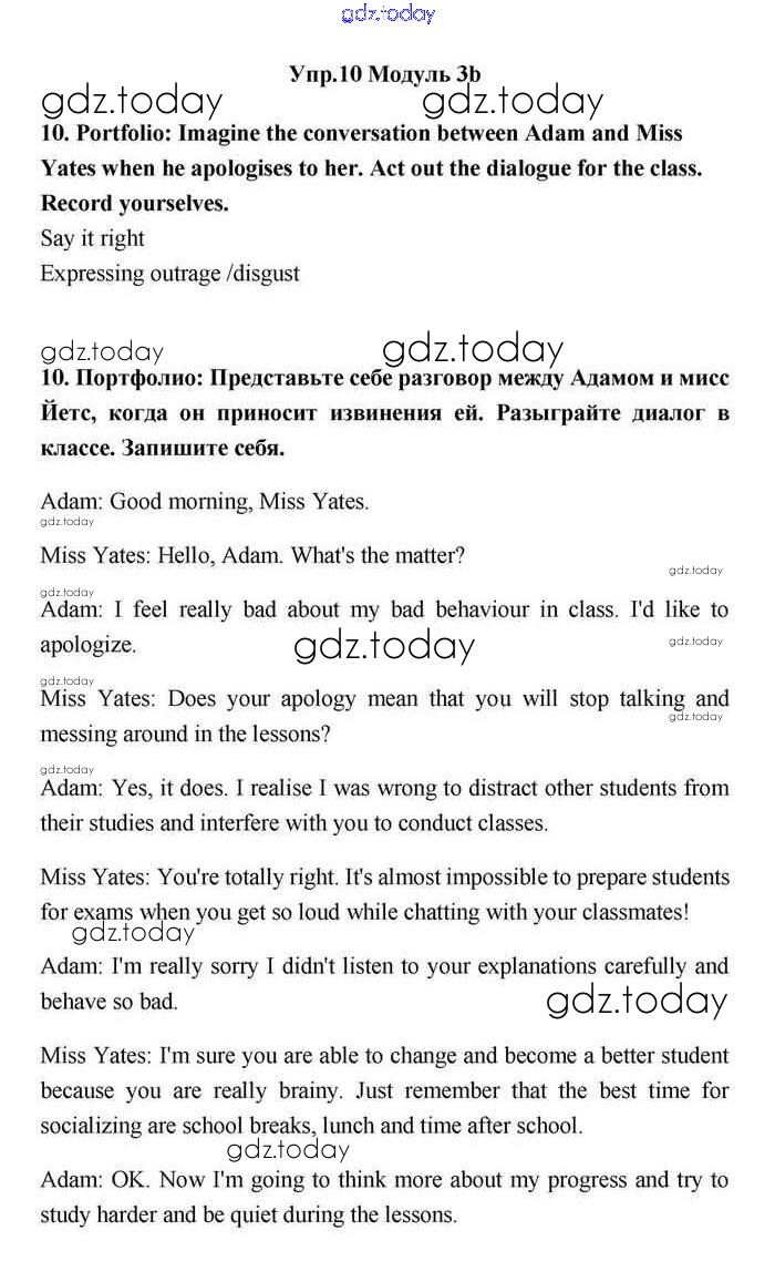 На страницах сайта gdz.today вы найдете учебный и вспомогательный материал, направленный на улучшения знаний школьной программы. ГДЗ - онлайн мир знаний 3b Решение. Module 3. Responsibility 10 Учебнику по Английскому языку для 11 класса Эванс, Дули Просвещение Spotlight 2015