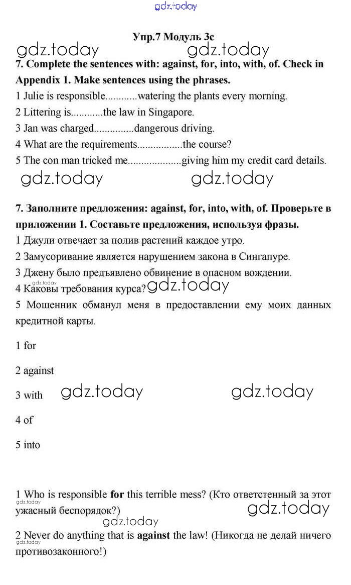 На страницах сайта gdz.today вы найдете учебный и вспомогательный материал, направленный на улучшения знаний школьной программы. ГДЗ - онлайн мир знаний 3c Решение. Module 3. Responsibility 7 Учебнику по Английскому языку для 11 класса Эванс, Дули Просвещение Spotlight 2015