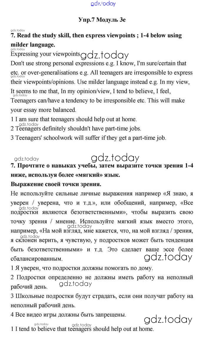 На страницах сайта gdz.today вы найдете учебный и вспомогательный материал, направленный на улучшения знаний школьной программы. ГДЗ - онлайн мир знаний 3e Решение. Module 3. Responsibility 7 Учебнику по Английскому языку для 11 класса Эванс, Дули Просвещение Spotlight 2015