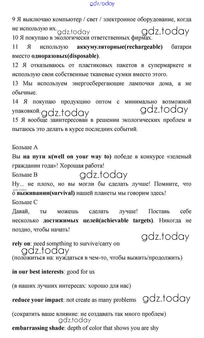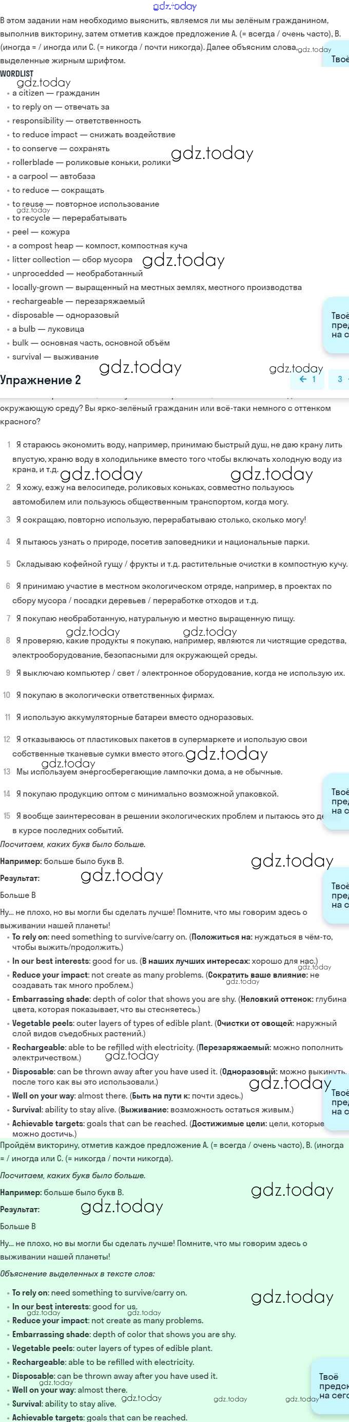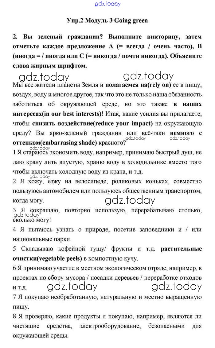 На страницах сайта gdz.today вы найдете учебный и вспомогательный материал, направленный на улучшения знаний школьной программы. ГДЗ - онлайн мир знаний Going green Решение. Module 3. Responsibility 2 Учебнику по Английскому языку для 11 класса Эванс, Дули Просвещение Spotlight 2015