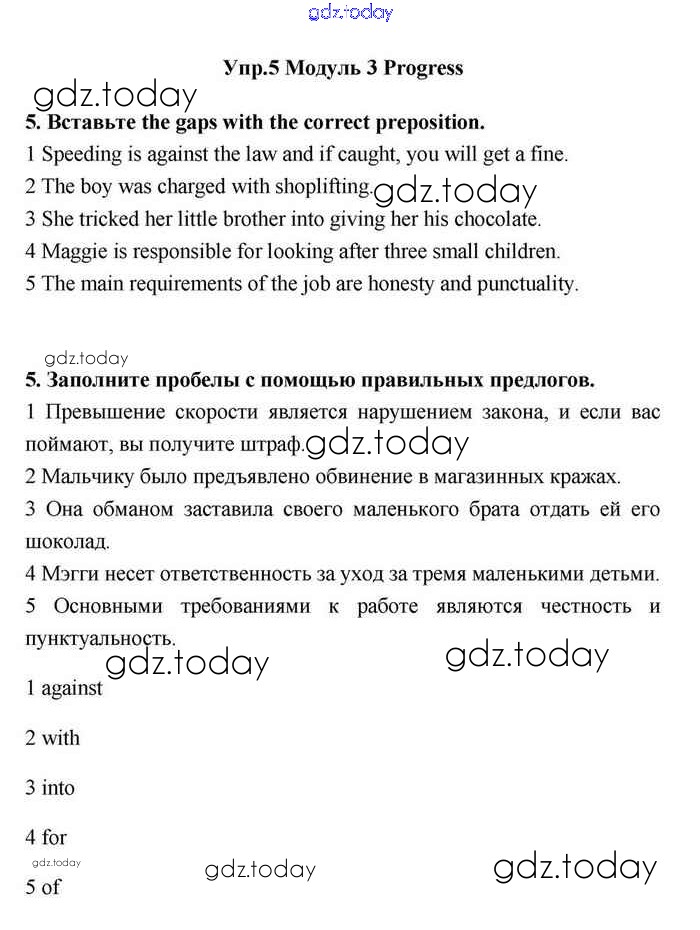 На страницах сайта gdz.today вы найдете учебный и вспомогательный материал, направленный на улучшения знаний школьной программы. ГДЗ - онлайн мир знаний Progress check 3 Решение. Module 3. Responsibility 5 Учебнику по Английскому языку для 11 класса Эванс, Дули Просвещение Spotlight 2015