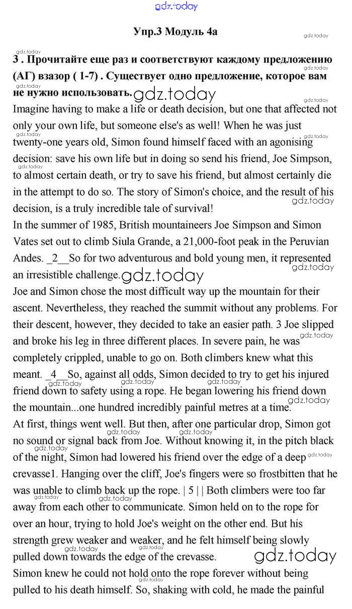 На страницах сайта gdz.today вы найдете учебный и вспомогательный материал, направленный на улучшения знаний школьной программы. ГДЗ - онлайн мир знаний 4a Решение. Module 4. Danger! 3 Учебнику по Английскому языку для 11 класса Эванс, Дули Просвещение Spotlight 2015