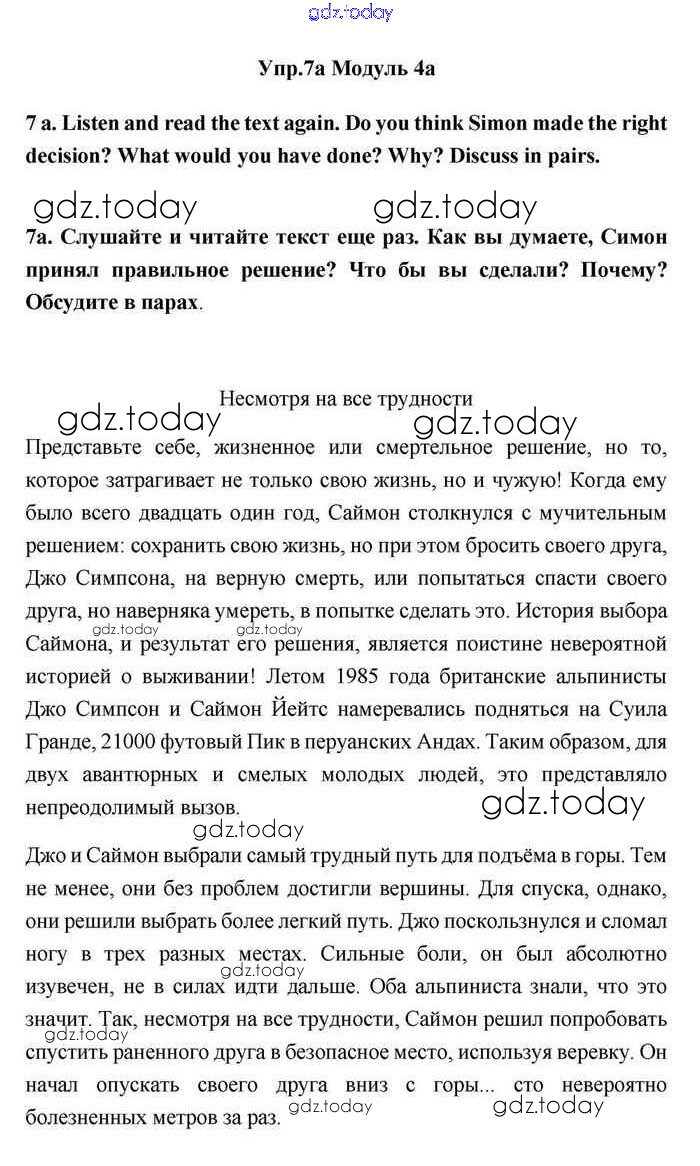 На страницах сайта gdz.today вы найдете учебный и вспомогательный материал, направленный на улучшения знаний школьной программы. ГДЗ - онлайн мир знаний 4a Решение. Module 4. Danger! 7 Учебнику по Английскому языку для 11 класса Эванс, Дули Просвещение Spotlight 2015